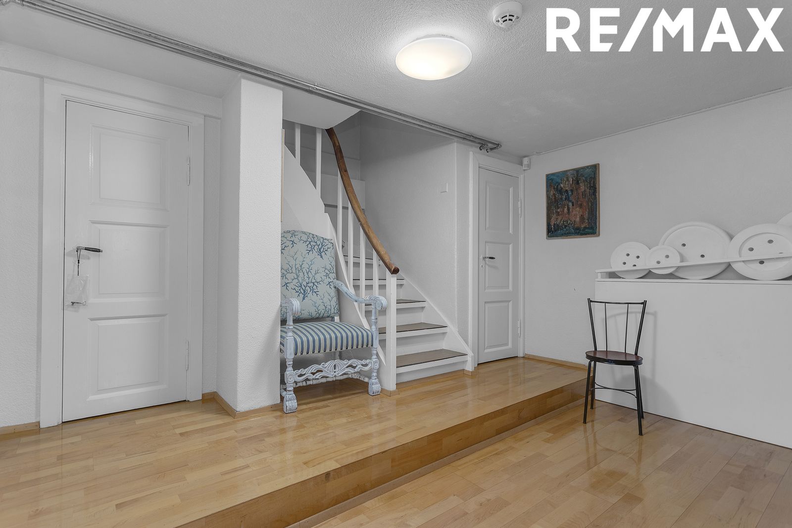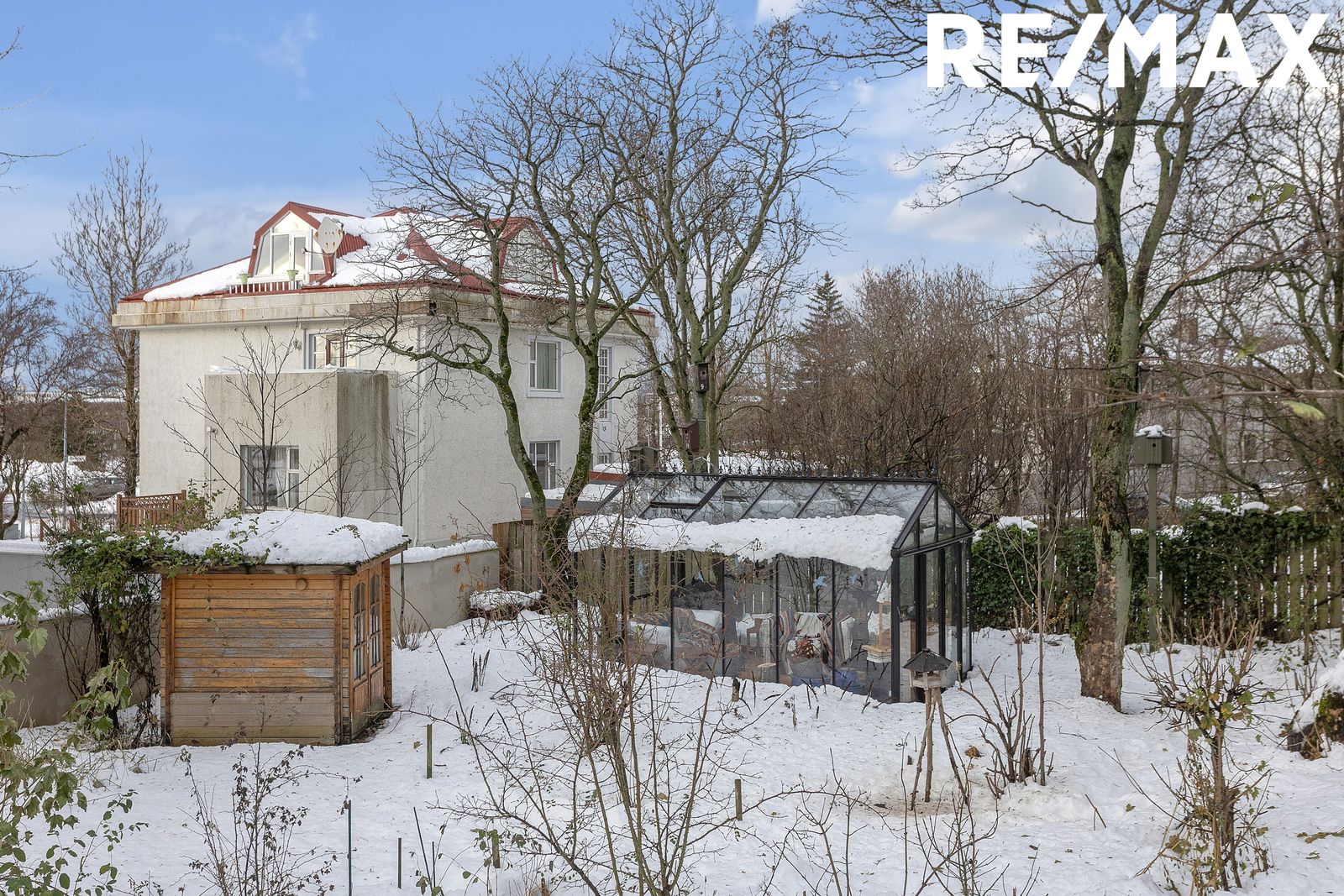 Húsið er 370 fm á þremur hæðum byggt árið 1931 og er með bílskúr og stórum garði í miðborginni. Húsið hefur verið í eigu aðeins tveggja aðila frá því það var byggt. Árið 1984 létu núverandi eigendur byggja við húsið, viðbyggingin er vel heppnuð og rímar fullkomlega við útliti hússins. Eigninni er vel við haldið í  gegnum árin,  að innan sem utan. Lóðin og garðurinn eru sérstök, með fjölbreytilegum tegundum trjáa og plantna ásamt veröndum sem bjóða upp á að elta sólarsvæðin á fallegum sumardögum.