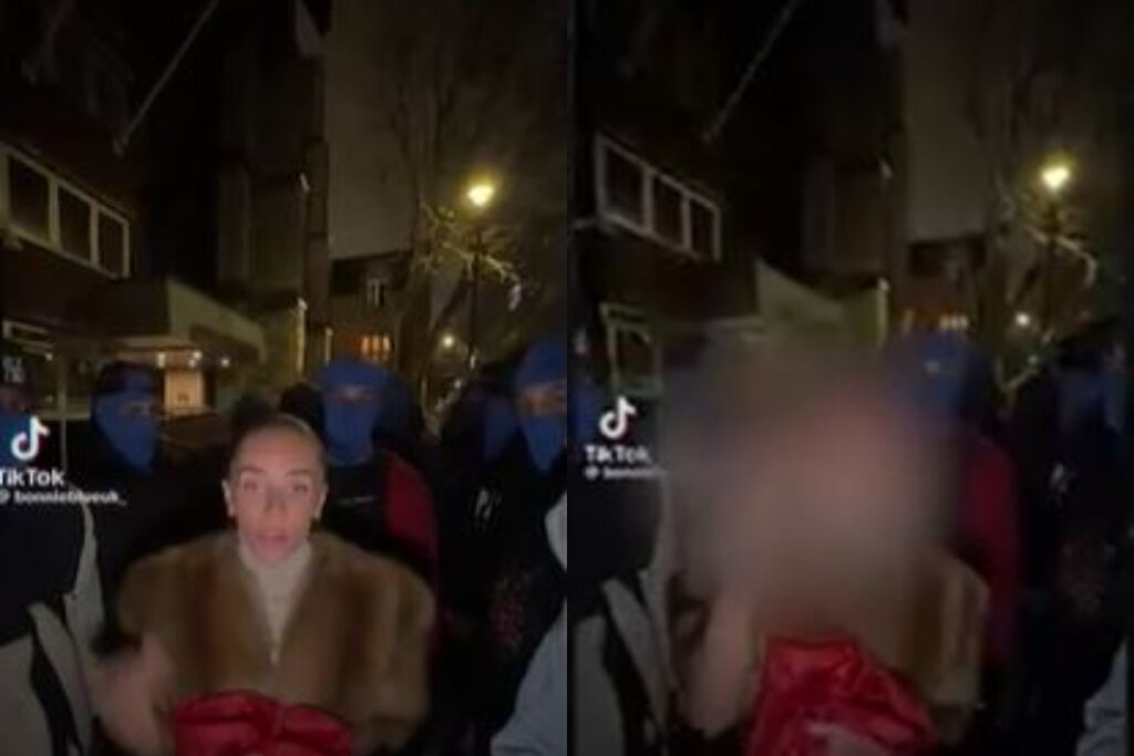 Bonnie hélt á fána Indónesíu við sendiráðið og þóttist veita munngælur. Skjáskot/TikTok