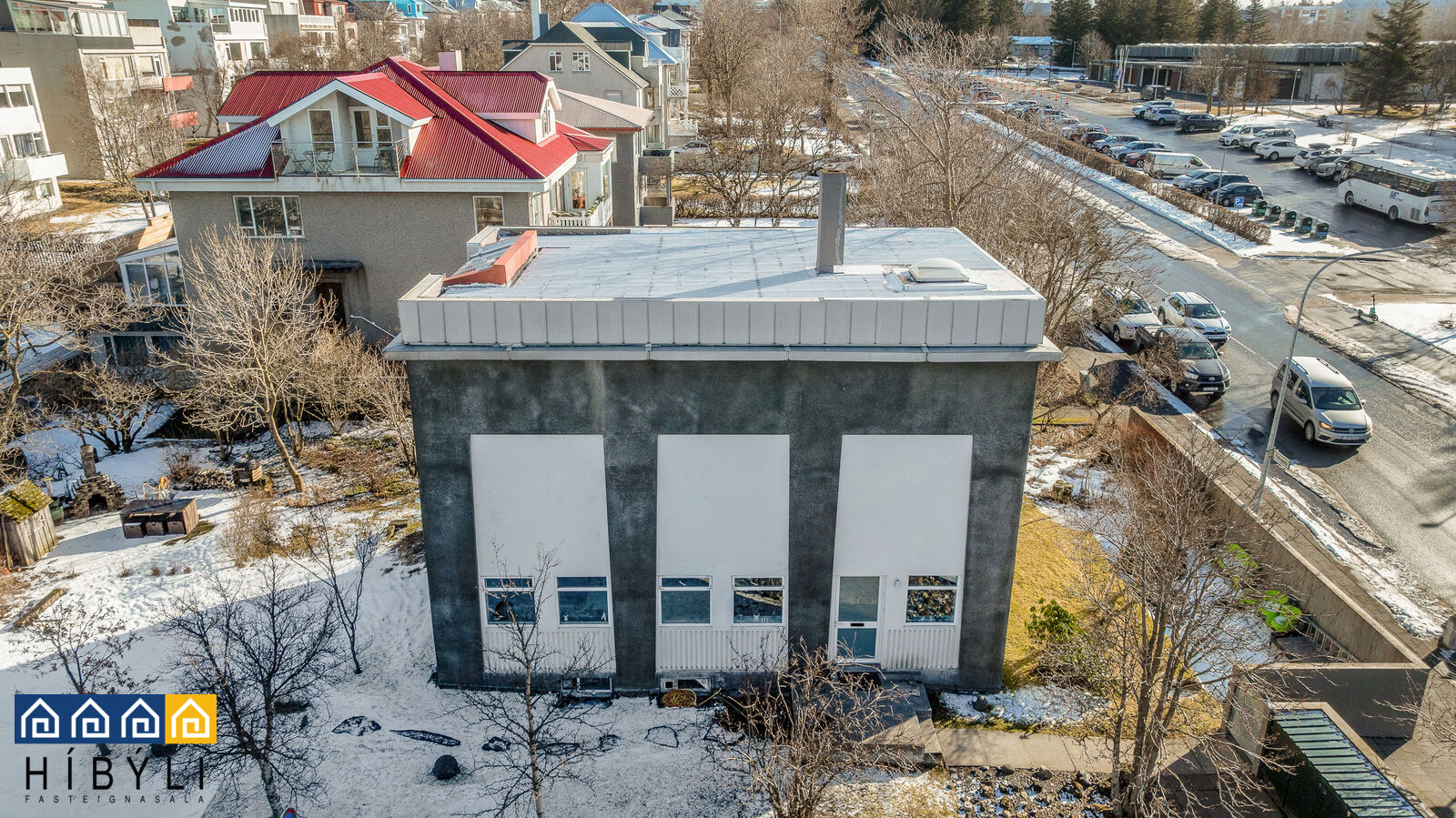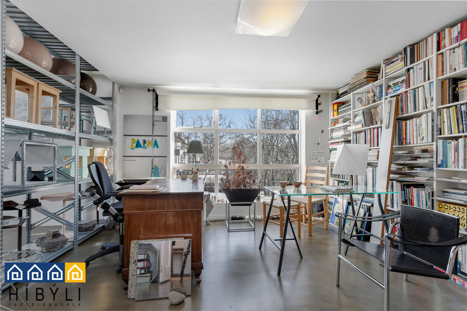 Á efstu hæð er herbergi með þakglugga. Á stigapalli við vinnustofuna og einnig við herbergið eru skolvaskar og á báðum hæðum möguleiki á að koma fyrir snyrtingu.