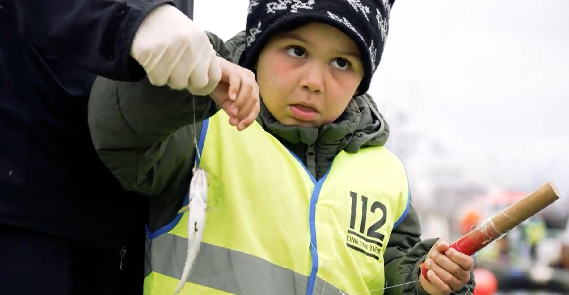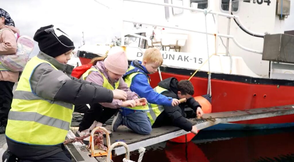 „Krakkarnir sýndu veiðimennskunni mikinn áhuga.“ Gleðin leynir sér ekki þegar fiskarnir fara að bíta á.