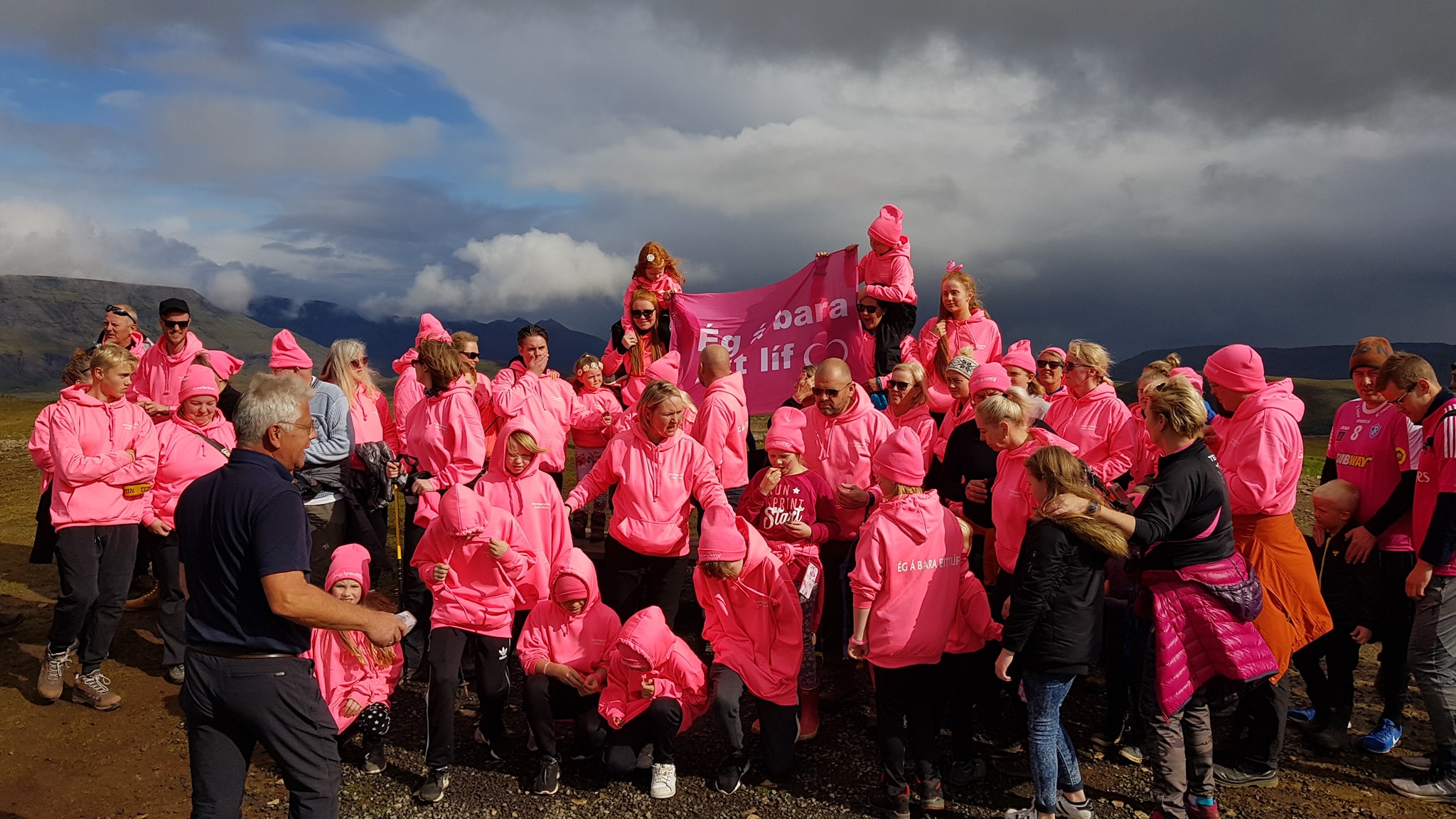 Bleikum fána var flaggað á toppi Úlfarsfells, en þrír fánar eru á leiðinni erlendis þar sem þeim verður flaggað í erlendum fjöllum: einn er á leið til Ástralíu, annar til Spánar og þriðji í ítölsku alpanna.