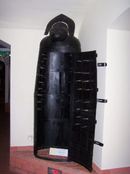 Járnfrúin minnir á líkkistur egypsku faraóanna en er í raun þýsk uppfinning frá fjórtándu öld. Innan í járnfrúnni voru hárbeittir gaddar á öllum hliðum. Óljóst er hvort fórnarlömbin hafi verið kramin í járnfrúnni og þeim blætt út eða að þau hafi verið látin standa inni í henni og ekki getað hreyft sig án þess að stinga sig. Ekki er heldur víst hvort gaddar hafi verið í þeim öllum.