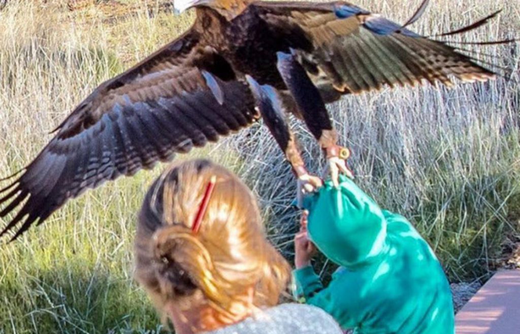 Ýmsar sögur eru til á Íslandi af örnum sem klófestu börn. Á myndinni má sjá ástralskan örn sem læsti beittum klóm sínum í dreng í síðustu viku. Á vef BBC segir að drengurinn og fjölskylda hans hafi orðið skelfingu lostinn. Til eru dæmi um svipuð atvik hér á landi en saga Ragnheiðar Eyjólfsdóttur sem fædd var árið 1877 varð fyrir því að vera tekin af erni, þá tveggja ára gömul.