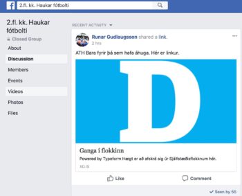 Þá setti Rúnar Guðlaugsson aðstoðarþjálfari færslu inn á lokaða síðu annars flokks með hlekk á síðu Sjálfstæðisflokksins þar sem hægt var að skrá sig. Við hana stóð „ATH Bara fyrir þá sem hafa áhuga.“