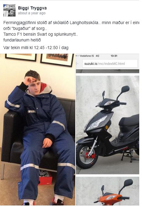 Bæði börnin fengu vespurnar í fermingargjöf, vespu Brynjars Karls var stolið stuttu eftir fermingu, og aftur um hálfu ári seinna þegar hann var á æfingu í Þrótti. Ástrós Birta fékk sína vespu einnig í fermingargjöf og núna nokkrum mánuðum seinna er henni stolið. Brynjar karl er einhverfur og segir faðir hans að vespunni hafi verið stolið af unglingsdrengjum í bæði skiptin, ekki þeim sömu, en drengirnir tengist.