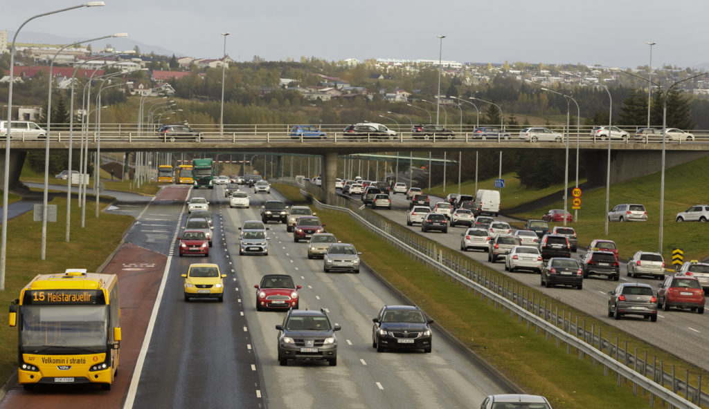 Umferðin á höfuðborgarsvæðinu í ágúst jókst mjög lítið, eða um 0,4 prósent, samkvæmt tölum sem Vegagerðin birti í gær. Hefur umferðin frá áramótum einungis aukist um 1,2 prósent og er útlit nú fyrir að heildaraukningin í ár geti numið 2,4 prósentum, samkvæmt reiknilíkani Vegagerðarinnar. Það yrði þá minnsta aukning síðan árið 2012.