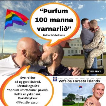 Um páskana mátti víða á samfélagsmiðlum sjá samsetta mynd af Baldri Þórhallssyni, prófessor og forsetaframbjóðanda, og eiginmanni hans Felix Bergssyni. Þar mátti sjá hjónin kyssast, rifjuð upp umdeild ummæli þeirra og í bakgrunni mátti sjá Bessastaði með regnbogafánann að húni. Ástæðan fyrir því að myndin fór svo víða var sú að dreifing myndarinnar á Facebook var kostuð af Facebook-síðu sem bar yfirskriftina Bessastaðabaráttan.