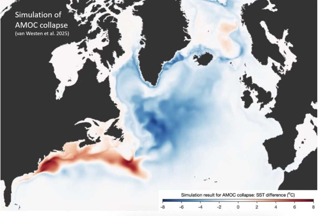 Haraldur fjallar í færslu á samfélagsmiðlum um AMOC, hringstrauminn í Norður Atlantshafi sem flytur mikla hitaorku norður á bóginn. En golfstraumurinn svokallaði er einn þáttur í honum.