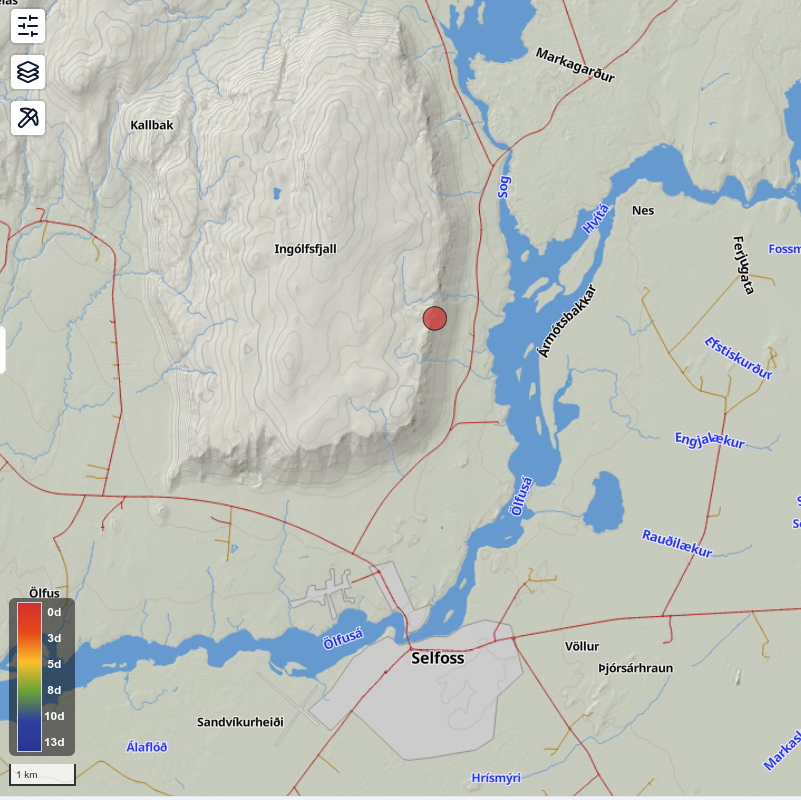 Jarðskjálfti í austanverðu Ingólfsfjalli fannst í byggð