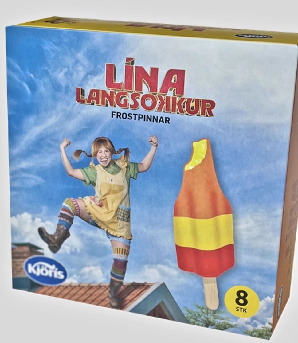 Rithöfundurinn Stefán Máni Sigþórsson furðar sig á nýjum frostpinnum sem auglýstir eru til sölu undir nafni hinnar ástkæru persónu Línu langsokk. Á pakkningunni er mynd af Birtu Sólveig Söring Þórðardóttur í hlutverki Línu langsokks, sama mynd og prýðir markaðsefni sýningarinnar sem nú er sýnd í Þjóðleikhúsinu fyrir fullum sal áhorfenda á hverri sýningu.