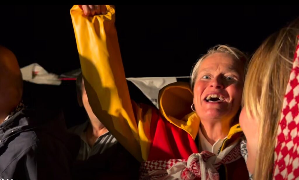„Ég sigli með Frelsisflotanum því ég er manneskja, móðir, amma og ég trúi því að við þurfum að gera allt sem í okkar valdi stendur til að stöðva þjóðarmorðið sem er að eiga sér stað í Palestínu.“