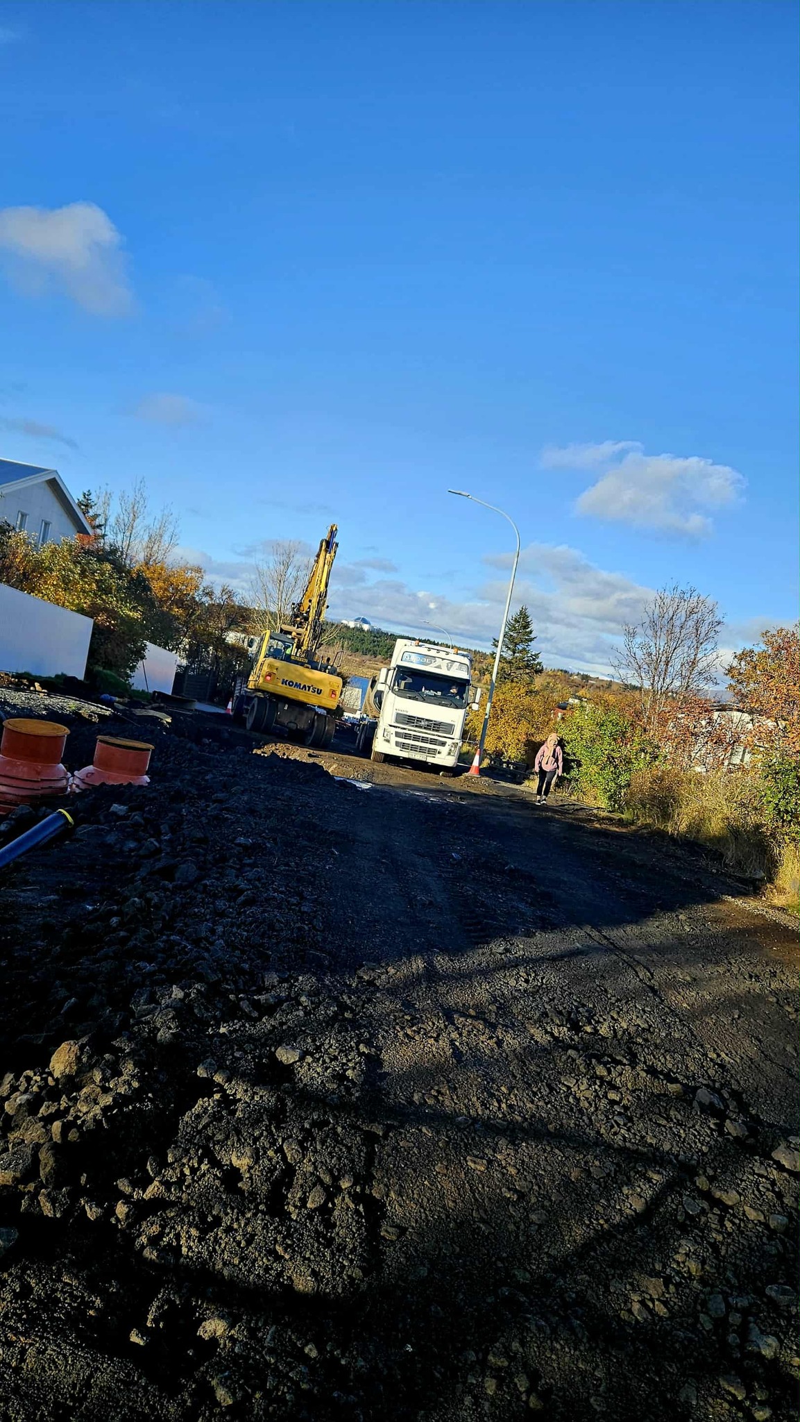 Bendir hún á að í gær hafi engin örugg gönguleið verið um framkvæmdasvæðið, aðeins illa jafnað stórgrýtt undirlag og mikill hasar á stórvirkum vinnuvélum.