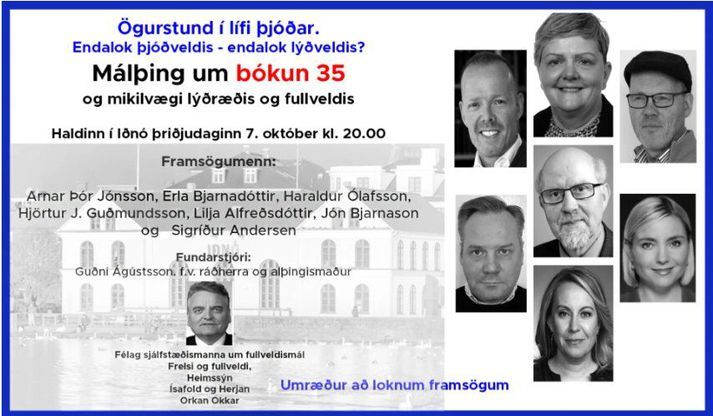 Gera grín að auglýsingu fullveldissinna um bókun 35 – „Málþing haldinn“?