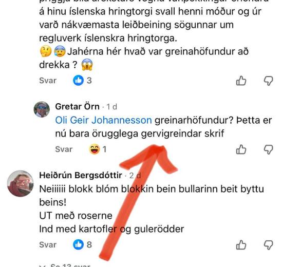 „Hvort er þá á ferð, gervigreind eða ekta heimska í hans tilfelli? Þetta er í fjórða skipti á stuttum tíma sem íslenskir fávitar saka mig um gervigreindarskrif, fávitar á borð við Gretar Örn og málfræðilegu mannvitsbrekkurnar í „Málvöndunarþættinum“ og fleiri haturshópum á Facebook þar sem sama kerlingin hefur ráðist á mig oftar en einu sinni og blessuð fylgispöku lömbin í hópnum segja ekki annað en „Æ, æ“, fólk sem aldrei hefur tjáð sig með einu orði um málfræði eða málvísindi, bara hjörð sem segir „Æ, æ“. Hvers vegna heitir þessi hópur ykkar ekki bara „Æ, æ“?“