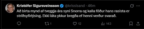 „Að birta mynd af tveggja ára syni Snorra og kalla föður hans rasista er stríðsyfirlýsing. Ekki láta ykkur bregða ef henni verður svarað“