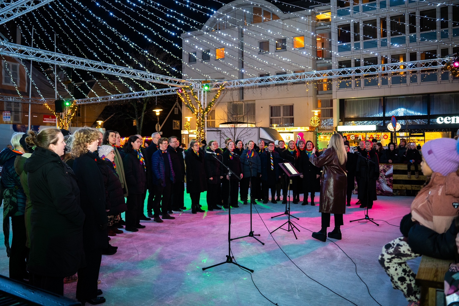Það var Hinsegin kórinn sem söng inn hátíðarstemninguna í gær og að því loknu sýndu skautarar frá listskautadeild Fjölnis listir sínar. Þar komu meðal annars fram atvinnuskautararnir Júlía Sylvía Gunnarsdóttir og Manuel Piazza sem hafa náð eftirtektarverðum árangri á heimsvísu undanfarið ár.