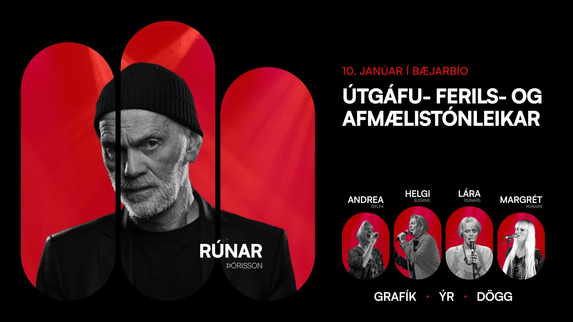 Á tónleikunum í Bæjarbíó kemur fram fjöldi samstarfsmanna Rúnars í gegnum árin, Andrea Gylfadóttir, Helgi Björnsson, Lára Rúnarsdóttir, Margrét Rúnarsdóttir, hljómsveitirnar DÖGG og ÝR auk meðlima hljómsveitarinnar GRAFÍK. Leikin verða þekkt lög þessara sveita sem og lög af nýjustu plötu Rúnars Svo fer og lög af fyrri plötum. Hljómsveitina skipa einvalalið hljóðfæraleikara meðal annars Arnar Þór Gíslason trommuleikari og Birkir Rafn Gíslason gítarleikari sem hafa starfað með Rúnari síðustu tvo áratugi.