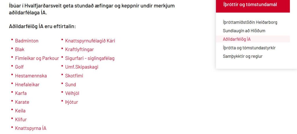 „Á sama tíma og upplýsingaleit er hafnað er á heimasíðu Hvalfjarðarsveitar tekið skýrt fram að íbúar sveitarfélagsins hafi fullan aðgang að íþróttastarfi á Akranesi,“ segir Vilhljálmur og birtir skýringarmynd sem sýnir að íbúar geti stundað æfingar og keppnir hjá öllum aðildarfélögum ÍA.