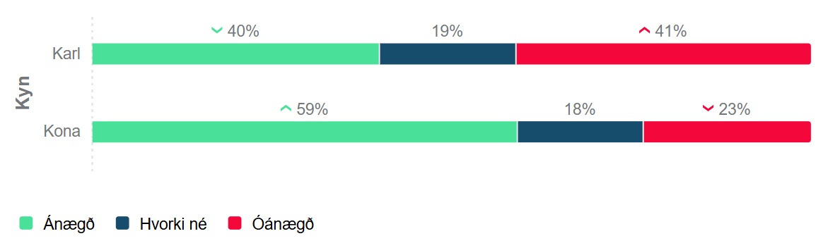 Konur eru marktækt ánægðari með breytinguna en karlar, 59% kvenna segjast ánægðar á móti 40% karla.