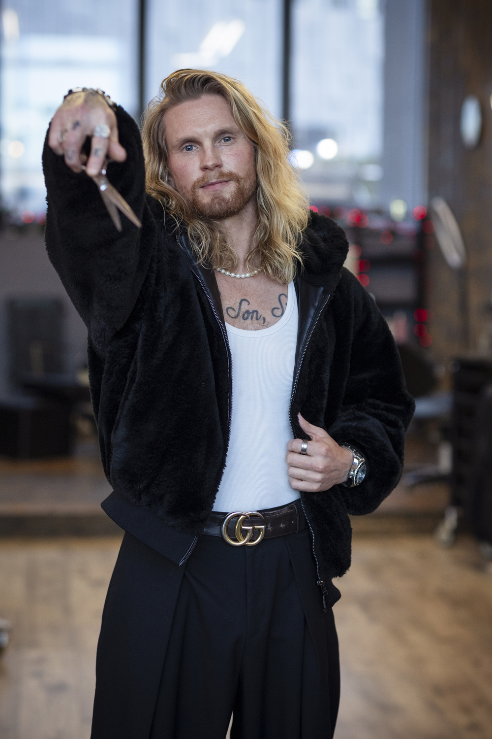 „Frændi minn er hárgreiðslumeistari og var meistarinn minn þegar ég var að læra og amma mín var hárgreiðslukona,“ segir Fannar Óli. „Það var stærsta ástæða þess að ég fór í fagið og svo réði miklu að ég gat mætt smart í vinnuna á hverjum degi. Það lék mjög stórt hlutverk hjá mér. Svo snýst þetta mikið um mannleg samskipti og ég hef áhuga á fólki.“