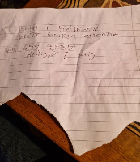 Miðinn sem skilinn var eftir. Mynd/aðsend