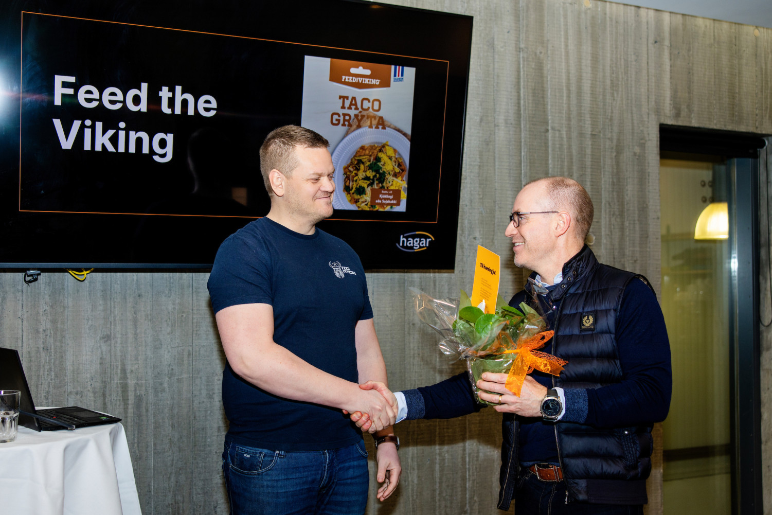 Friðrik Guðjónsson veitir styrknum viðtöku fyrir hönd Feed the Viking