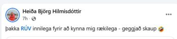 Ein af þeim sem lýsir ánægju sinni í athugasemd við færslu RÚV er Edda Björgvinsdóttir leikkona sem hefur komið að fjölda Áramótaskaupa í gegnum árin og lék í einu atriði í skaupi ársins 2025: