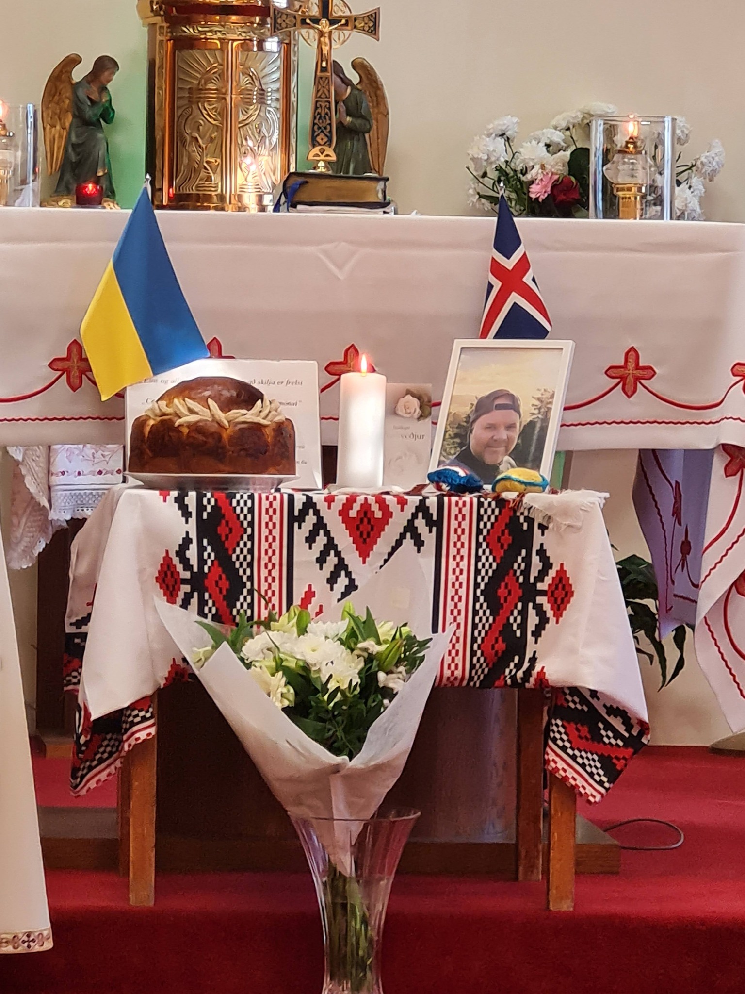 Að loknum formlegum hluta minningarstundarinnar hittumst við í samkomuhúsi kirkjunnar, þar sem við kynntumst dóttur Kjartans og systkinum hans og áttum saman hlý og einlæg samtöl. Fulltrúar úkraínska samfélagsins fluttu fjölskyldunni samúðarkveðjur, þakkarorð og orð stuðnings.“