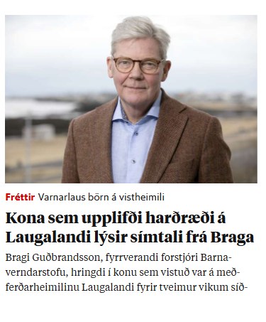 Freyr Rögnvaldsson, upplýsingafulltrúi Eflingar og blaðamaður, rifjar það upp að fyrir fimm árum hafi Bragi Guðbrandsson fyrrverandi forstjóri Barnaverndarstofu ekkert munað um málefni meðferðarheimilisins Laugalands.