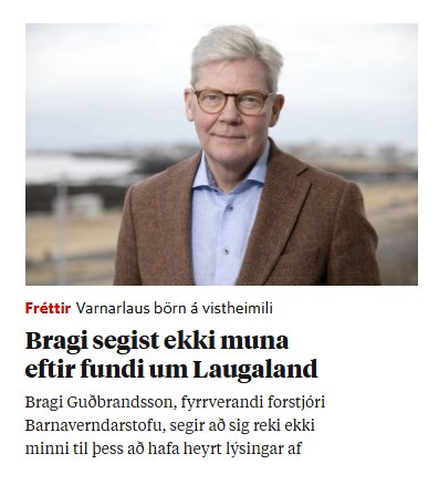 Þetta er ekki neitt nýtt, að Bragi segist ekki hafa vitað af því sem undir hann heyrði, eins og nú í tilfelli Bakkakots. Hann mundi, að eigin sögn, nákvæmlega ekkert eftir neinu er varðaði Laugaland þegar ég var að spyrja hann um það fyrir fimm árum síðan. Sem er helvíti merkilegt í ljósi allra gagna.