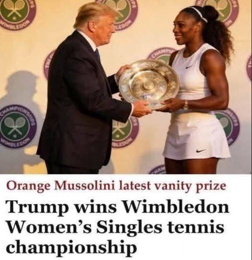 Hent hefur verið grín að gjöf hinni venesúelsku Machado til Donald Trump. Meðal annars hafa verið birtar gervigreindarmyndir af Trump að taka við Wimbledon verðlaunum í einliðaleik kvenna frá Serenu Williams.
