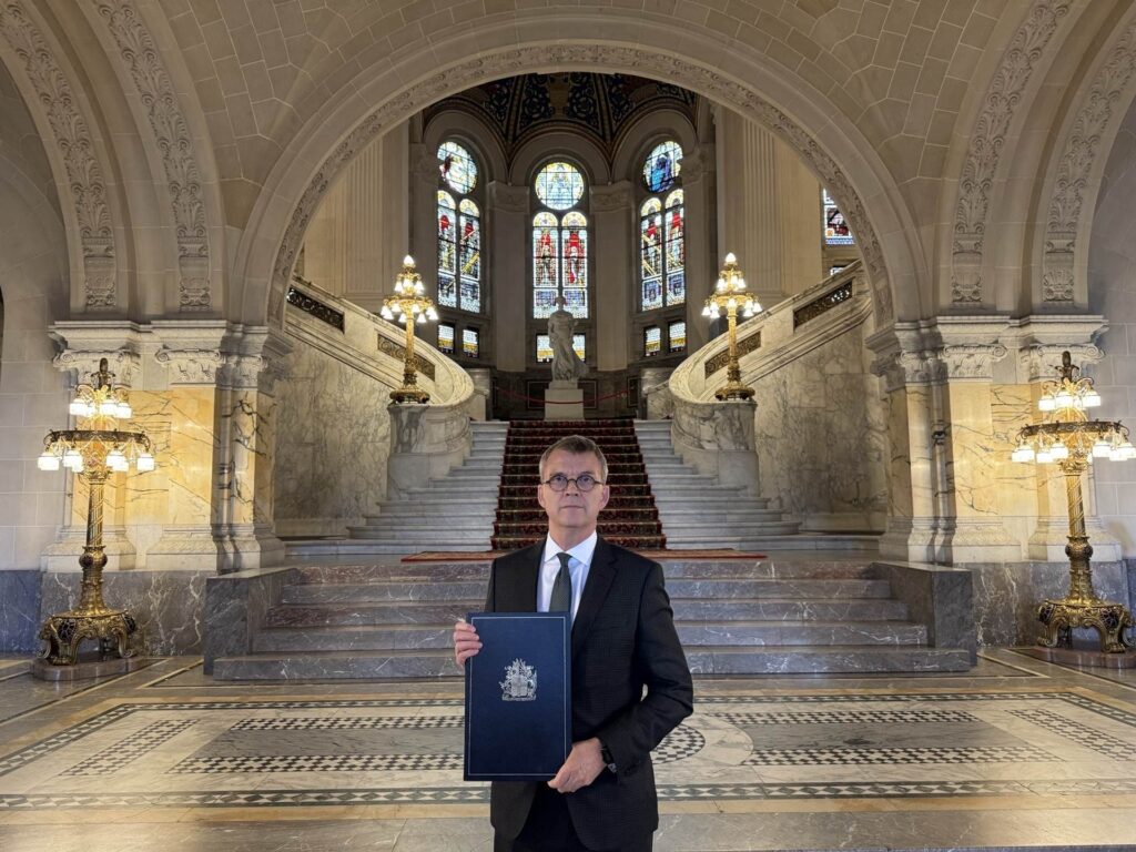 Stefán Haukur Jóhannesson, sendiherra Íslands gagnvart Hollandi, afhenti yfirlýsinguna fyrir hönd íslenskra stjórnvalda í dómstólnum í Haag. Mynd/Stjórnarráðið