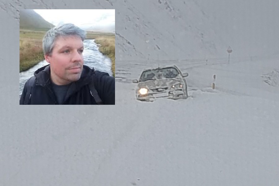 „Þetta kom mér mjög á óvart. Fyrsta snjóflóðið sem lenti á mér var lítið. En nógu stórt til þess að ýta mér út af veginum, næstum út að sjónum,“ segir Davíð sem er franskur og flutti á Vestfirði árið 2020. Fyrstu fjögur árin bjó hann á Ísafirði og starfar þar enn en nú býr hann á Súðavík og keyrir á milli.