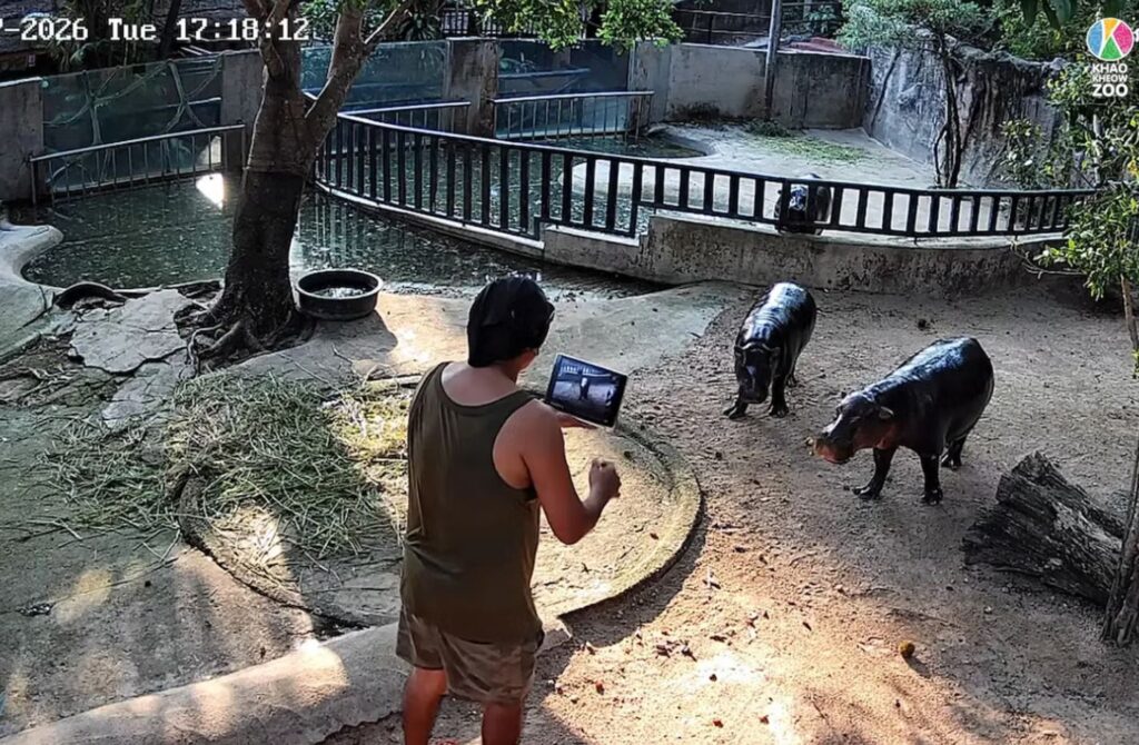 Að sögn Chodchoy reyndi maðurinn, sem hefur ekki verið nafngreindur, ekki að snerta Moo Deng eða móður hennar. En engu að síður virtist þeim vera mjög brugðið við þessa óvæntu og óvelkomnu heimsókn og hafa fengið aðhlynningu dýralæknis.