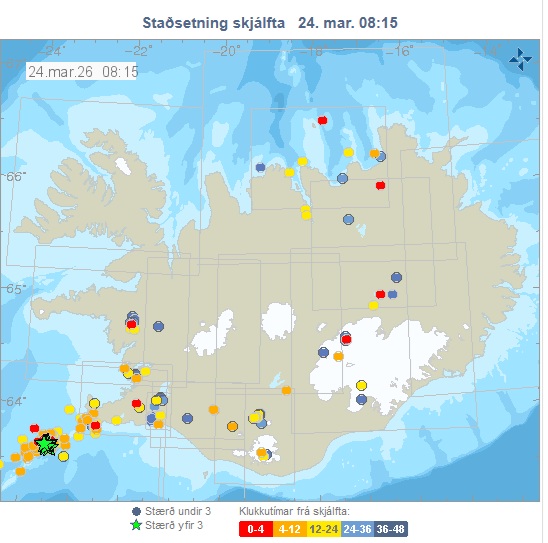„Þessi hrina getur lognast út af en þær eru búnar að vera svolítið ákveðnar þarna og stutt á milli þeirra þannig að eitthvað er í gangi,“ sagði hann.