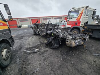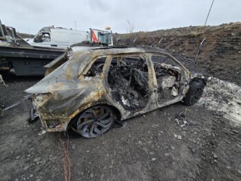 Á myndunum hér að neðan má sjá að báðir bílarnir eru augljóslega gjörónýtir eftir íkveikjuna.