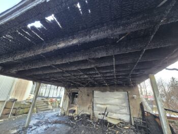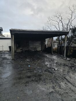 Önnur mynd sem sýnir skemmdirnar á bílskýlinu. Mynd: Aðsend.
