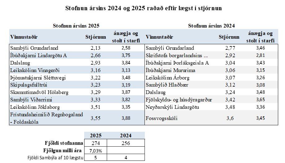 Vitnar hann í gögn Reykjavíkurborgar um Stofnun ársins 2025. Þar fær Grundarland eina lægstu einkunina, 2,13 og hafði lækkað frá fyrra ári. Ótti og vanlíðun starfsfólk er ekki aðeins eitthvað sem er tjáð með tilfinningum heldur með mælanlegum niðurstöðum.