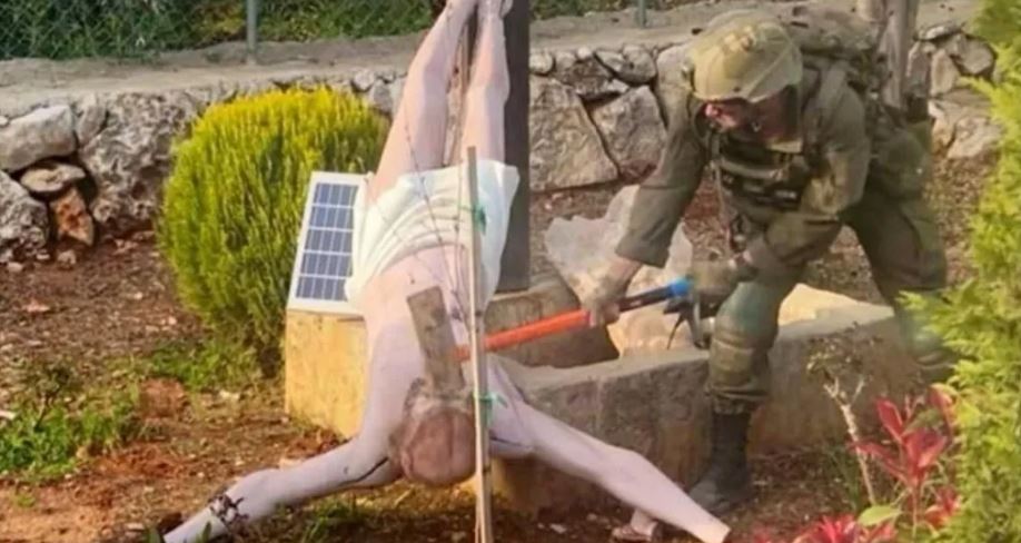 Myndir af ísraelskum hermanni að eyðileggja styttu af Jésú Kristi hefur vakið hörð viðbrögð. Utanríkisráðherra Ísrael biðst afsökunar á atvikinu.