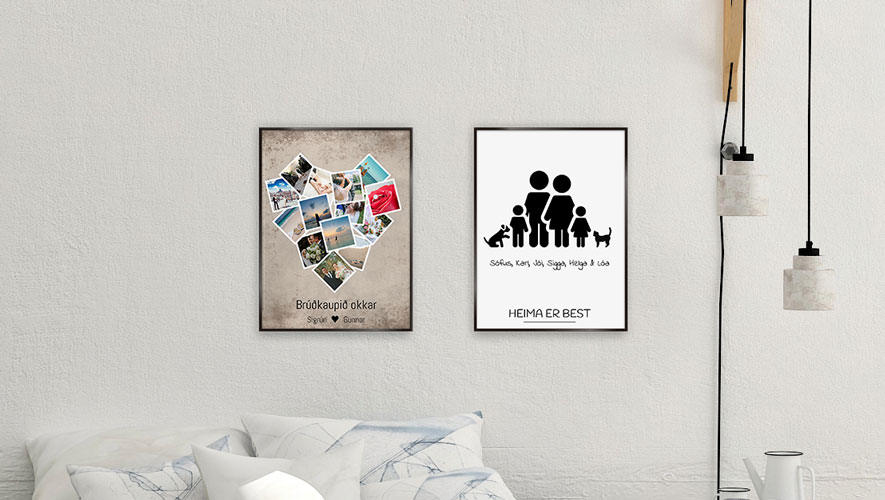 Það er auðvelt að búa til sitt eigið veggspjald, nú getur þú fegrað veggina á heimilinu með einstökum listaverkum sem þú hannar og velur. Eitthvað sem hæfir bæði persónuleika þínum og smekk. Myndir sem fanga allar góðu minningarnar. Hamingjudaga með fjölskyldunni, barnsfæðingar, afmæli, brúðkaup, ferðalög og bara allt sem þér dettur í hug. Augnablikin sem þú vilt fanga í mynd.