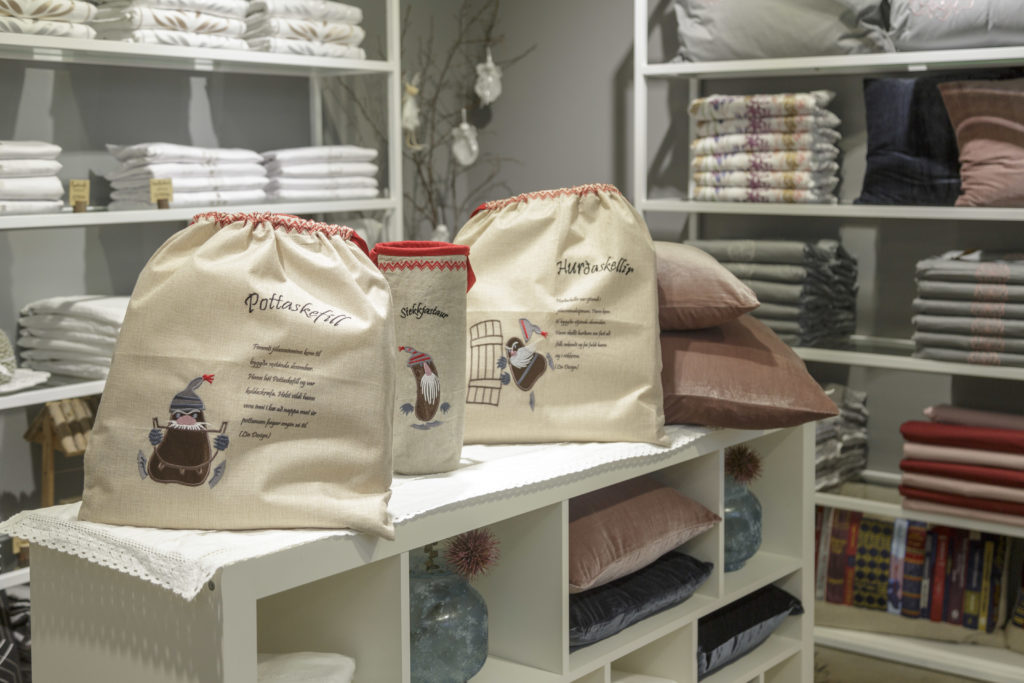 Helsta nýjung Lín Design eru fallegir flöskupokar úr textíl og skemmtilegir jólapokar úr striga, skreyttir með myndum og sögum af íslensku jólasveinunum.