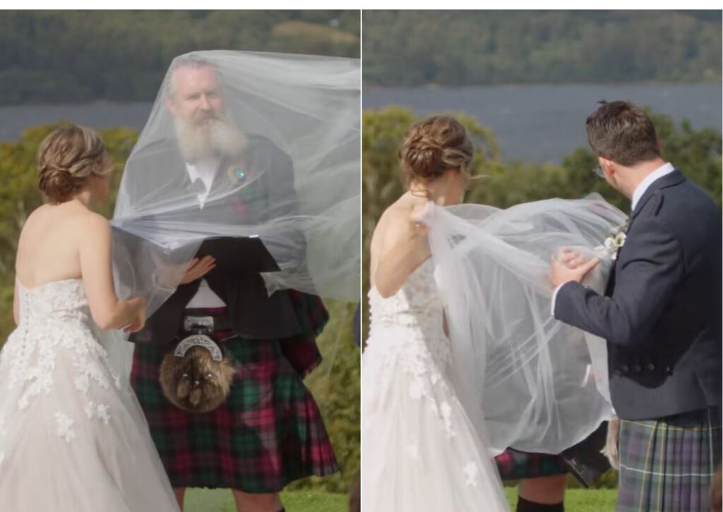 @pieceoftimeweddingfilms 🤣 Love is in the air! A breezy day on the bonnie banks saw Kirstie’s veil sweep over @andrewdscottcelebrant in full flow. Ever the pro the only option was to…carry on! An awesome but tad windy day at @boturichcastle You can’t beat that backdrop! #windywedding #veilfail #scottishwedding@Andrew D Scott Celebrant ♬ original sound – Piece Of Time Wedding Films
