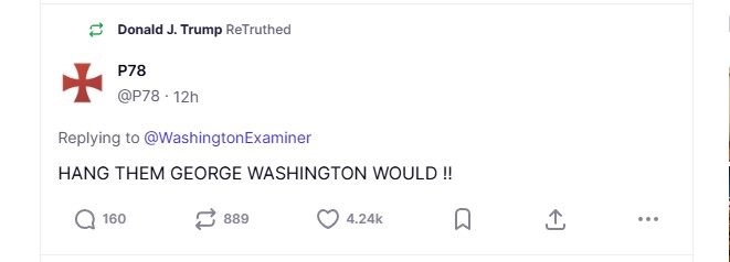 Trump brjálaður og deilir ákalli um að pólitískir andstæðingar hans verði hengdir