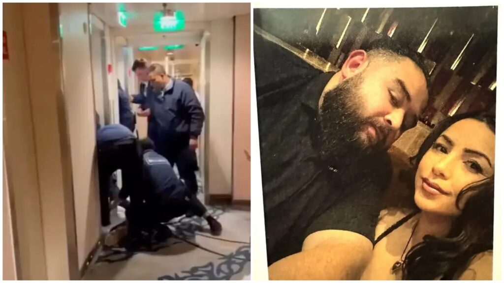 Öryggisverðir um borð yfirbuguðu hann og notuðu meðal annars piparúða, en í stefnu fjölskyldunnar kemur einnig fram að honum hafi verið gefið róandi lyf, halóperídól. Þá var honum niðri í að minnsta kosti þrjár mínútur af nokkrum öryggisvörðum sem lögðu líkamsþunga sinn á hann.