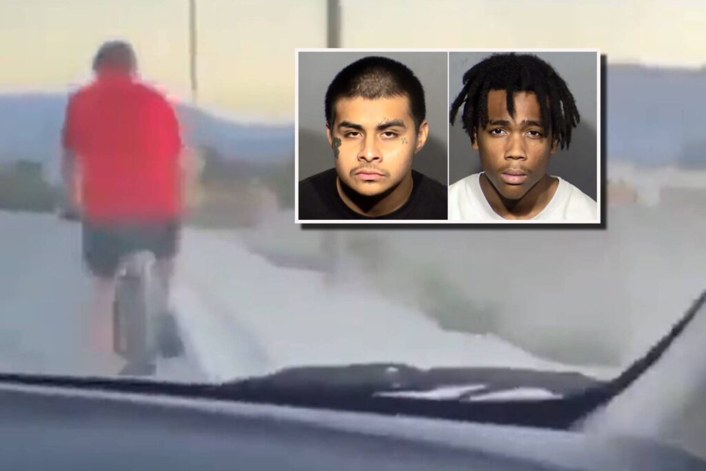Mennirnir, hinn tvítugi Jesus Ayala, og hinn átján ára gamli Jzamir Keys, voru dæmdir í 20 og 18 ára fangelsi fyrir að aka viljandi á hjólreiðamann í Las Vegas.