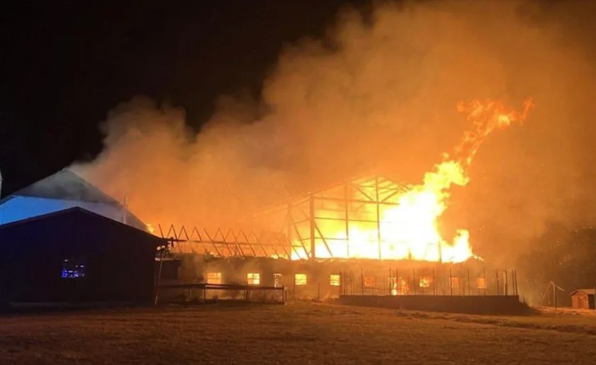 Fjögurra manna fjölskylda hafði sest að jólamáltíðinni þegar eldvarnarkerfi á eigninni fór í gang. Eldurinn kviknaði í yfirgefnu húsi þar sem áður hafði verið mjólkurbú, hann breiddist hratt út um eignina, yfir í skúra, gripahús og að lokum í íbúðarhúsið.