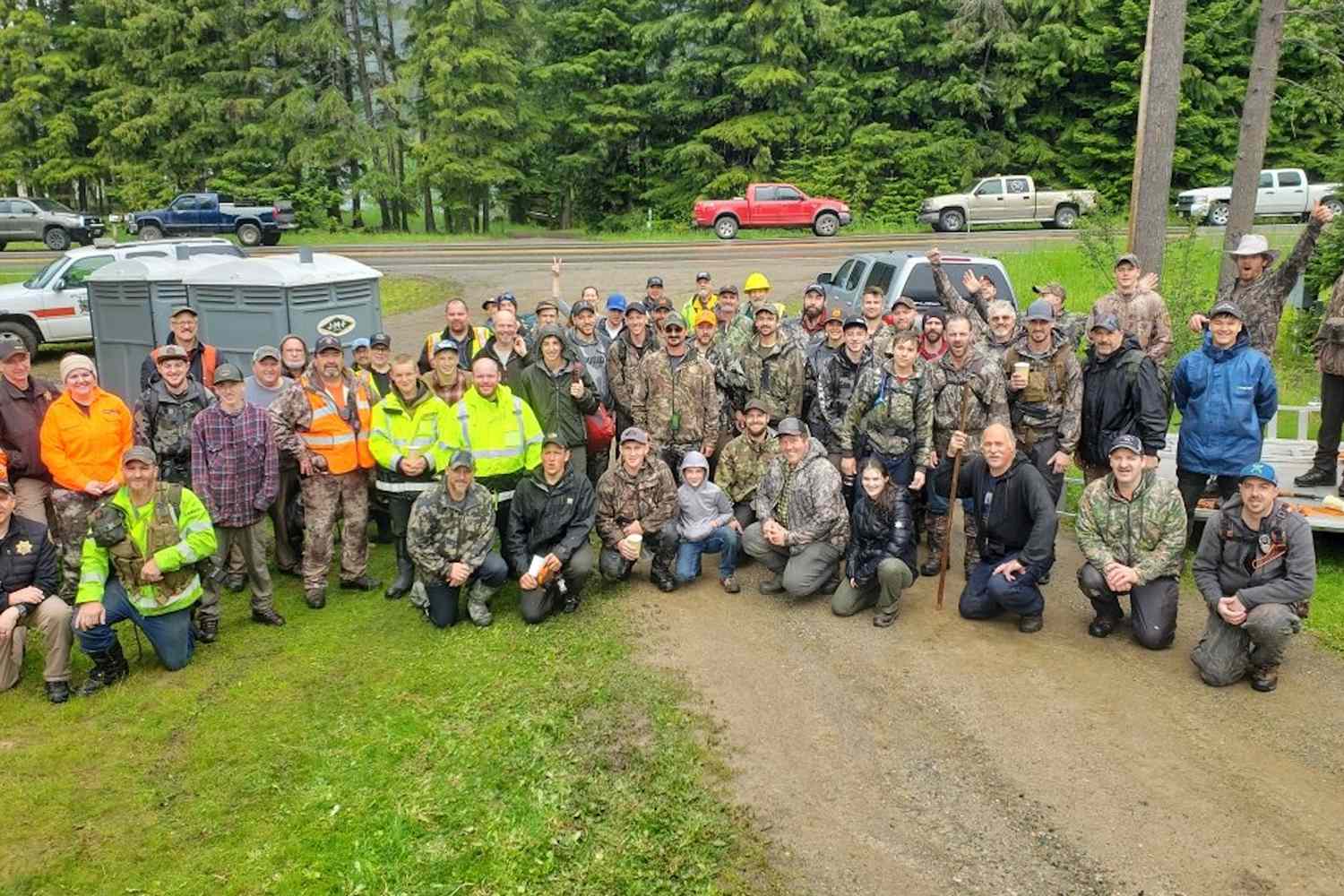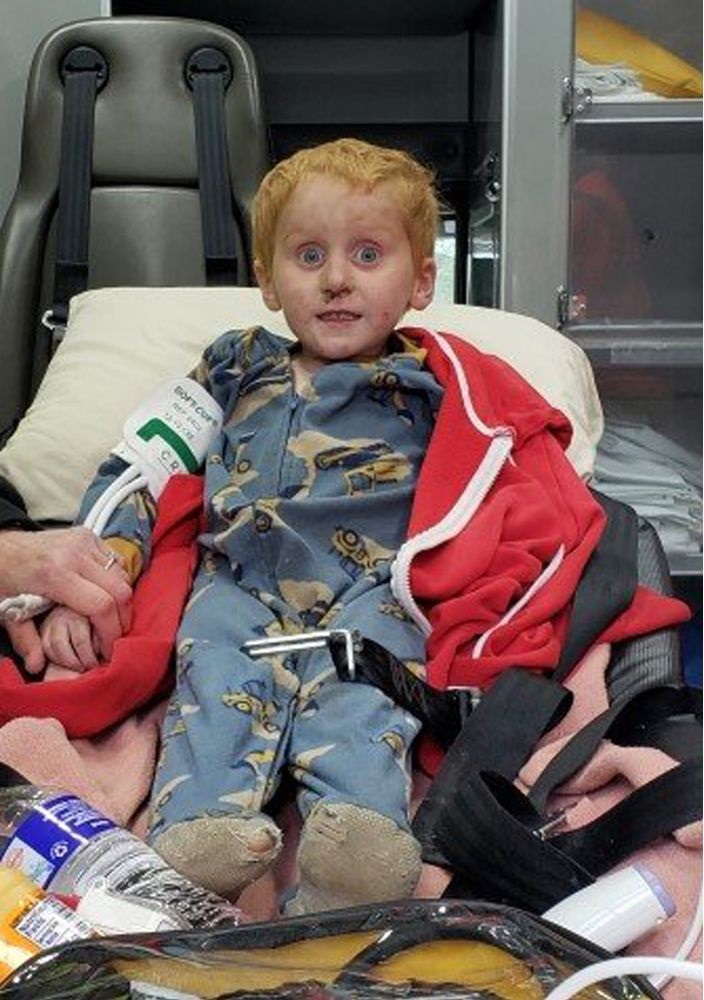 Í miklum stormum og vegna ógnar frá björnum og fjallaljónum voru hundar, þyrlur þjóðvarðliðsins, drónar og sjálfboðaliðar á jörðu niðri notaðir til að leita um óbyggðirnar í tvo daga þar til rauðhærði smábarnið sást í skúr rúmlega þremur kólómetrum frá heimili sínu.