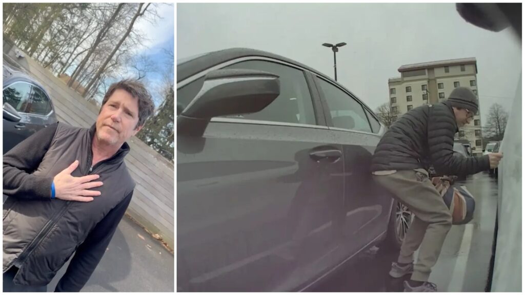 Myndband af því þegar eigandi bílsins mætir á vettvang til að ræða við Chadd hefur verið birt á fréttamiðlum vestan hafs. Á myndbandinu sést þegar Chadd virðist fullur iðrunar og neitar því til að byrja með að hafa notað lykil. „Þetta var litur, ég næ þessu af með tusku,“ segir hann.
