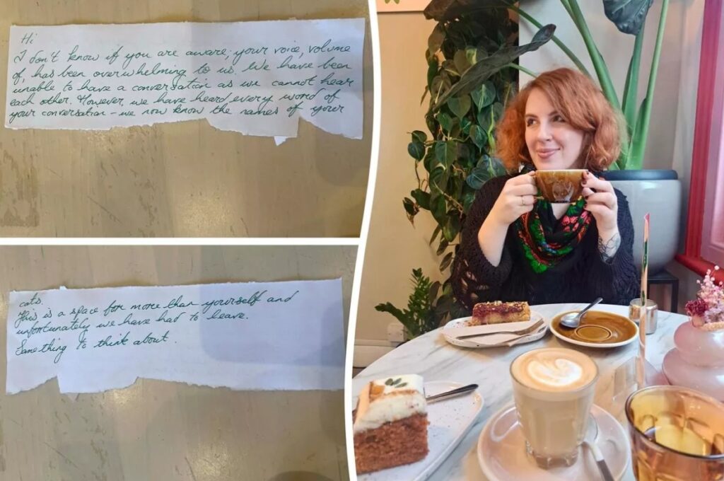 Á miðanum sem ætlaður var hinni 32 ára gömlu Pauline stóð að hún væri svo hávær að viðkomandi ætti ekki annan kost en að yfirgefa kaffihúsið. Pauline sat á kaffihúsinu með vinkonu sinni þar sem þær drukku kaffi og spjölluðu saman.