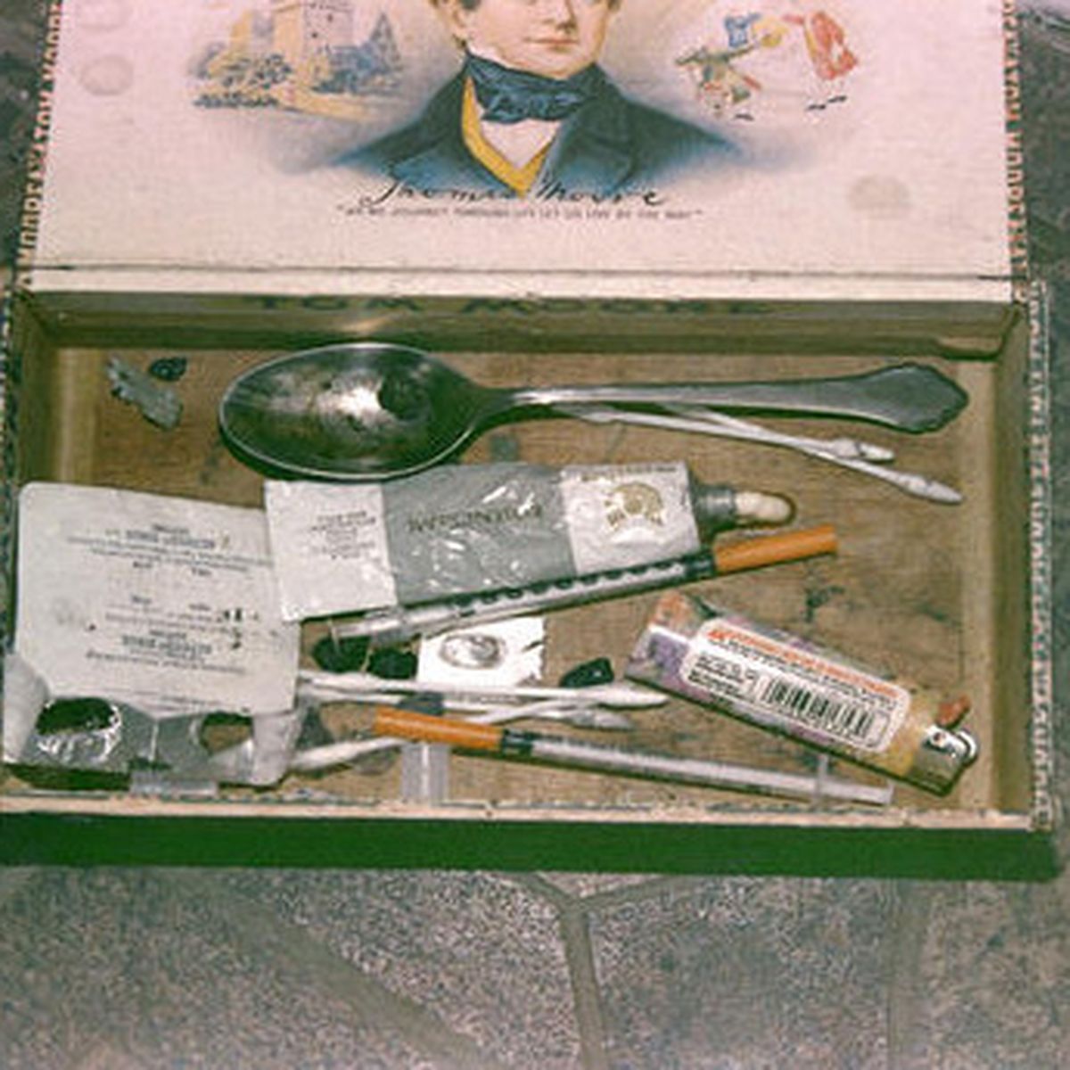 Neyslubúnaður söngvarans fannst á vettvangi og þar mátti finna nálar sem enn voru með loki, bómullarhnoðra og litla bita af heróíni sem allir voru af svipaðri stærð.